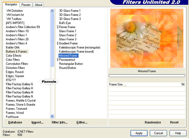 9. Effetti>Plugins>Filters Unlimited 2.0 - Buttons&Frames - Mirrored Frame: