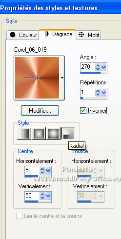 Placer en avant plan le dégradé et sélectionner le dégradé Cuivre métallique ou Corel_06_019: