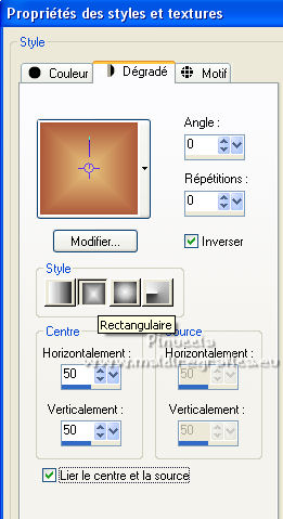 Préparer en avant plan le dégradé rectangulaire de l'étape 2, mais Inverser coché.