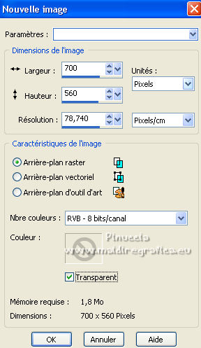 1. Ouvrir une nouvelle image transparente 700 x 560 pixels.