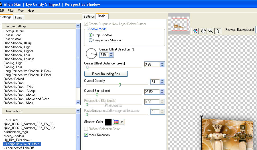 Effets>Modules Externes>Alien Skin Eye Candy 5 Impact - Perspective Shadow.