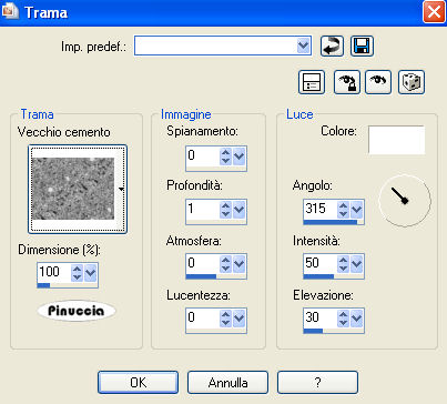 Effetti>Effetti di trama>Trama - seleziona la trama Vecchio cemento, con i seguenti settaggi: