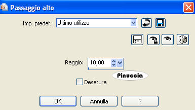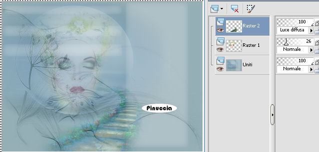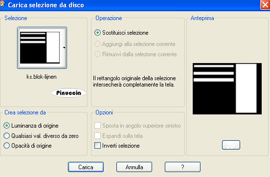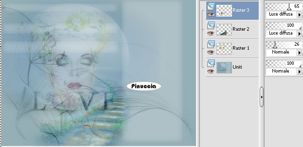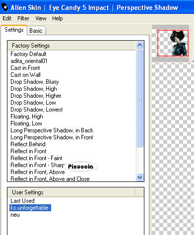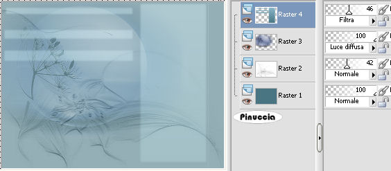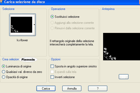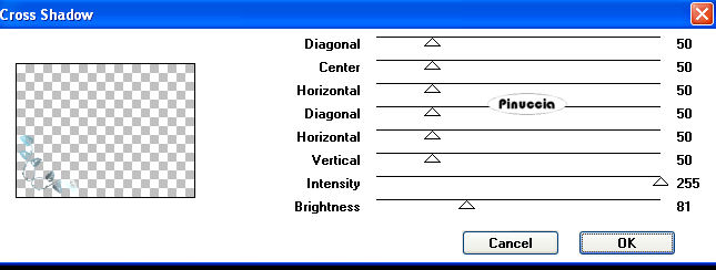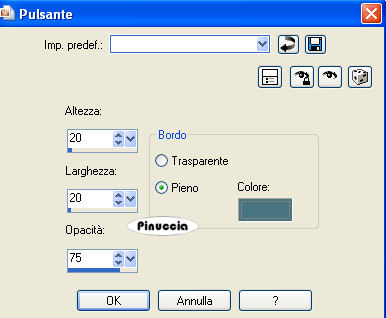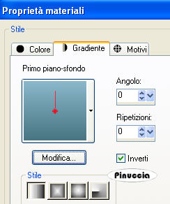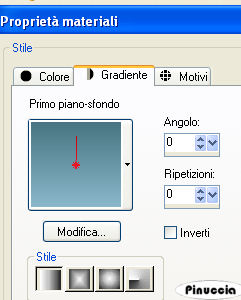 qui puoi trovare qualche risposta ai tuoi dubbi. Se l'argomento che ti interessa non è presente, ti prego di segnalarmelo. Questo tutorial è stato scritto con PSP X2, ma può essere eseguito anche con le altre versioni di PSP. Per tradurlo, ho usato PSP X. Occorrente: Materiale qui I tubes sono di Kitty. Rispetta il lavoro degli autori e mantieni i tubes al loro stato originale. Filtri: Alien Skin Eye Candy 5 Impact - Perspective Shadow qui Graphics Plus - Cross Shadow qui ![]() Se non vuoi sentire la musica, premi il tasto ESC Metti la maschera AMG_8Mask nella cartella Maschere. Metti le selezioni ks.bloklijnen e ks.flower nella cartella Selezioni. Importa il pennello ks.boom1 in PSP (sui pennelli vedi qui) Metti il preset ks.unforgettable nella cartella del filtro Eye Candy 5 Impact>Settings>Shadow; oppure puoi importarlo - quando ti servirà - dalla cartella in cui hai scompattato il materiale. Vedi gli appunti su come importare un preset nella scheda del filtro qui Apri il resto del materiale in PSP. 1. Apri una nuova immagine trasparente 800 x 600 pixels. ![]() Imposta il colore di primo piano con #487581, e riempi l'immagine trasparente con questo colore.2. Selezione>Seleziona tutto. Livelli>Nuovo livello raster. Apri l'immagine "plaatjespaarse bloem" e vai a Modifica>Copia. Torna al tuo lavoro e vai a Modifica>Incolla nella selezione. Selezione>Deseleziona. 3. Abbassa l'opacità di questo livello al 42%. ![]() Effetti>Effetti di bordo>Trova bordi orizzontali. Effetti>Effetti di bordo>Aumenta di più. 3. Apri il tube "kittys-febr210" e vai a Modifica>Copia. Torna al tuo lavoro e vai a Modifica>Incolla come nuovo livello. Effetti>Effetti di immagine>Scostamento. ![]() Regola>Tonalità e saturazione>Viraggio. ![]() Cambia la modalità di miscelatura di questo livello in Luce diffusa. ![]() Effetti>Effetti di bordo>Aumenta. Imposta il colore di primo piano con #8ab7ca, e il colore di sfondo con #487581. Passa il colore di primo piano a Gradiente. ![]() 8. Livelli>Nuovo livello raster. Selezione>Carica/Salva selezione>Carica selezione da disco. Cerca e carica la selezione ks.blok-lijnen. ![]() Riempi la selezione con il gradiente.Selezione>Deseleziona. 9. Cambia la modalità di miscelatura di questo livello in Filtra, e abbassa l'opacità al 46%. ![]() Effetti>Effetti di bordo>Passaggio alto. ![]() 10. Livelli>Unisci>Unisci visibile. Apri il tube "kittyS-28-8-2008-Nimf" e vai a Modifica>copia. Torna al tuo lavoro e vai a Modifica>Incolla come nuovo livello. Posiziona il tube nel cerchio.Attiva lo strumento Selezione a mano libera , da punto a punto.![]() e seleziona la parte del tube all'esterno del cerchio. ![]() Premi sulla tastiera il tasto CANC. Selezione>Deseleziona. Abbassa l'opacità di questo livello al 26%. ![]() 11. Apri il tube "kittyS-longway" e vai a Modifica>Copia. Torna al tuo lavoro e vai a Modifica>Incolla come nuovo livello. Sposta il tube in basso al centro.Cambia la modalità di miscelatura di questo livello in Luce diffusa. ![]() 12. Apri il tube "kittys-love" e vai a Modifica>Copia. Torna al tuo lavoro e vai a Modifica>Incolla come nuovo livello. Spostalo sotto il tube nel cerchio.Cambia la modalità di miscelatura di questo livello in Luce diffusa, e abbassa l'opacità di questo livello al 65%. ![]() 13. Imposta il colore di primo piano con il nero #000000. Livelli>Nuovo livello raster. Attiva lo strumento Pennello ![]() cerca e seleziona il pennello ks.boom1. ![]() 14. Applica il pennello a destra (a metà fuori dall'immagine), cliccando con il tasto sinistro del mouse per usare il colore nero di primo piano. ![]() Cambia la modalità di miscelatura di questo livello in Luce diffusa. *** se il tuo PSP non supporta pennelli superiori a 500x500 pixels, procedi così: Apri il pennello in PSP. Immagine>Ridimensiona, a 500 x 500 pixels di larghezza, mantieni proporzioni non selezionato. File>Esporta - pennello personalizzato, assegna un nome al pennello (diverso dall'originale, altrimenti ti sarà risposto che esiste già) e ok. Attiva lo strumento Pennello ![]() Cerca e seleziona il pennello che hai appena esportato con un altro nome, e applicalo con il colore nero al centro dell'immagine. Avendo ridimensionato senza mantenere le proporzioni, l'albero ha cambiato aspetto. Per riportarlo pressappoco alle dimensioni originali del pennello, attiva lo strumento Deformazione (tasto D sulla tastiera),riducilo in larghezza e alzalo in altezza, pressappoco così (non occorre che sia perfettamente uguale al mio esempio). ![]() Quindi spostalo a destra, fuori dall'immagine, pressappoco così. ![]() Cambia la modalità di miscelatura del livello in Luce diffusa. *** Livelli>Unisci>Unisci visibile e dovresti avere questo. ![]() 15. Livelli>Nuovo livello raster. Imposta nuovamente il colore di primo piano con #8ab7ca, e passalo al Gradiente del punto 6, ma inverti non selezionato. ![]() Riempi il nuovo livello con il gradiente.Livelli>Carica/Salva maschera>Carica maschera da disco. Cerca e carica la maschera AMG_8Mask: ![]() Livelli>Unisci>Unisci gruppo. 16. Cambia la modalità di miscelatura di questo livello in Filtra. ![]() Apri il tube "kittys-lijst polka dot" e vai a Modifica>Copia. Torna al tuo lavoro e vai a Modifica>Incolla come nuovo livello. 17. Selezione>Carica/Salva selezione>Carica selezione da disco. Cerca e carica la selezione ks.flower. ![]() Livelli>Nuovo livello raster. Riempi con l'ultimo gradiente.Selezione>Deseleziona. 18. Effetti>Plugins>Graphics Plus - Cross Shadow. ![]() Immagine>Ridimensiona, all'80%, tutti i livelli non selezionato. Sposta l'immagine in basso a sinistra.19. Effetti>Effetti 3D>sfalsa ombra: ![]() Regola>Aggiungi/Rimuovi disturbo>Aggiungi disturbo. ![]() Abbassa l'opacità di questo livello al 65%. 20. Livelli>Unisci>Unisci visibible. Effetti>Effetti 3D>Pulsante, con il colore di sfondo #487581. ![]() 21. Selezione>Seleziona tutto. Attiva nuovamente "kittys-lijst polka dot" e vai a Modifica>Copia. Torna al tuo lavoro e vai a Modifica>In
