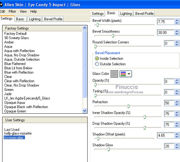 7. Effets>Modules Externes>Alien Skin Eye Candy 5 Impact - Glass.