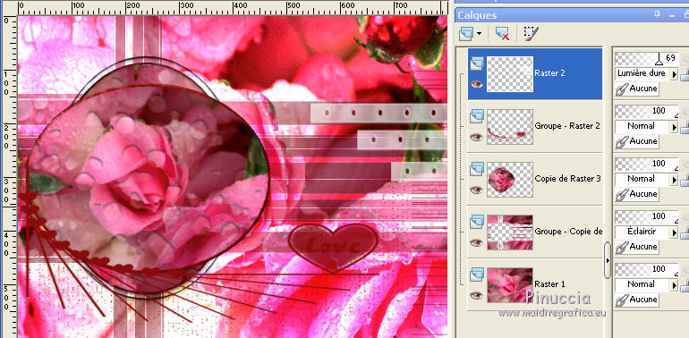 Placer le calque en mode Lumière dure et réduire l'opacité à 69%.