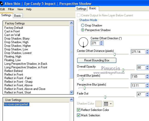 16. Effets>Modules Externes>Alien Skin Eye Candy 5 Impact - Perspective Shadow.