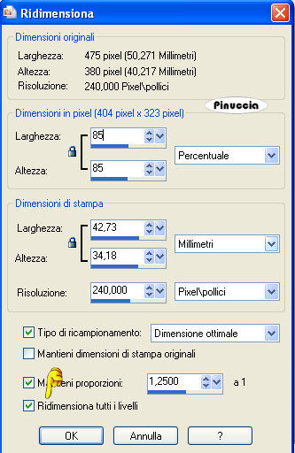 Immagine>Ridimensiona dell'85%, tutti i livelli selezionato.