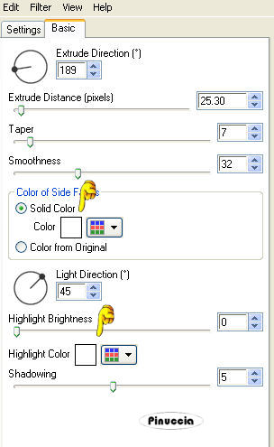 12. Effetti>Plugin>Eye Candy 5 Impact>Extrude, con i seguenti settaggi: