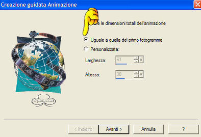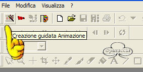 Torna all'animazione creata prima e vai a Modifica>Seleziona tutto e quindi Modifica>Incolla>Incolla nel fotogramma selezionate e con attenzione applica la spirale sul lato destro del rettangolo.