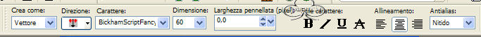 Attiva lo strumento testo, cerca il font Bickham Script, la dimensione dipende dal testo che vuoi scrivere.
