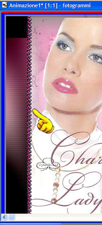 Torna alla tua animazione e vai a Modifica>Seleziona tutto e poi Modifica>Incolla>Incolla nel fotogramma selezionato e posiziona le stelline sul viso della ragazza.