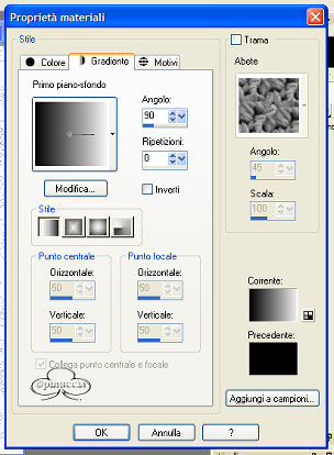 6. Setta il colore di primo piano nero, il colore di sfondo #F9F7F8. Clicca su Gradiente e cerca Primo piano-sfondo, angolo 90, ripetizioni 0,