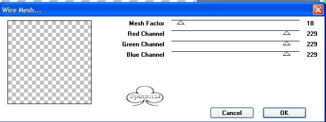 7. Effetti>Plugins>Tramage>Wire Mesh, con questi settaggi: