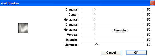 4. Effetti>Plugins>Greg's Factory - PoolShadow, con i seguenti settaggi: