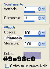 Effetti>Effetti 3D>Sfalsa ombra, con i seguenti settaggi, colore #9e98c0.
