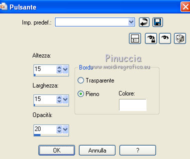 16. Effetti>Effetti 3D>Pulsante - 2 volte con i seguenti settaggi.