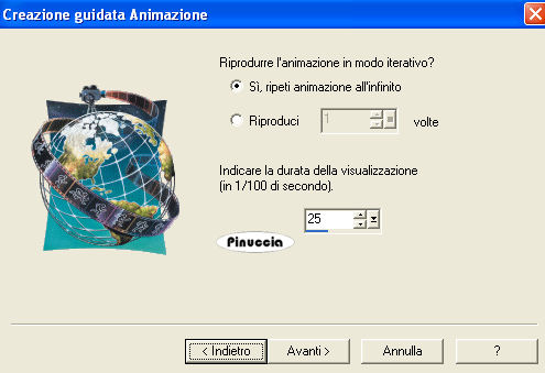 -ripeti animazione all'infinito, e approfitta per regolare la velocità a 25.
