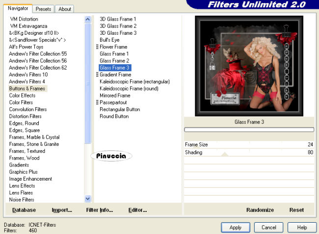 Effetti>Plugins>Filters Unlimited - Buttons & Frames - Glass Frame 3: