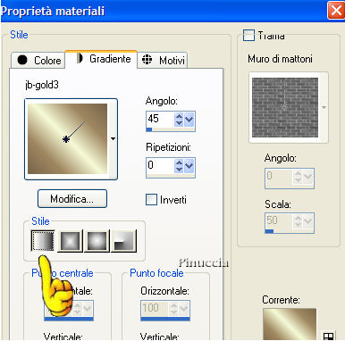 2. Imposta il colore di primo piano su Gradiente, cerca il gradiente jb-gold 3, con i seguenti settaggi:
