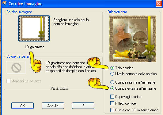 16. Immagine>Cornice immagine, cerca LD-goldframe con i seguenti settaggi: