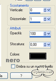 Effetti>Effetti 3D>Sfalsa ombra, con i seguenti settaggi, colore nero.
