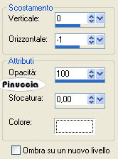 Effetti>Effetti 3D>Sfalsa ombra, con i seguenti settaggi, colore bianco.