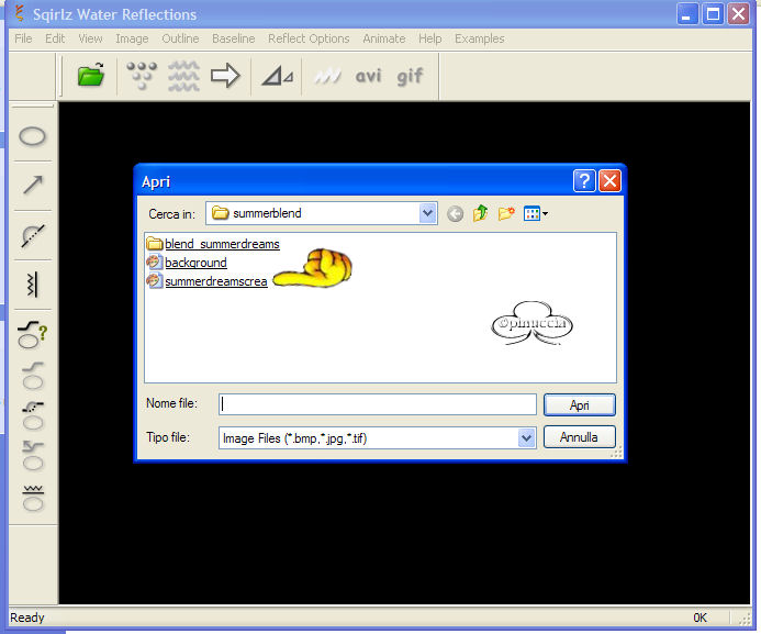 2. Cerca il file summerdreamscrea (il file più piccolo che hai salvato al punto 14 del tutorial), cliccando sulla cartella verde.