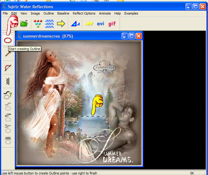 dovrà avere il riflesso dell'acqua, e clicca due volte con il tasto destro del mouse per concludere l'operazione. Avrai qualcosa di simile a questo: