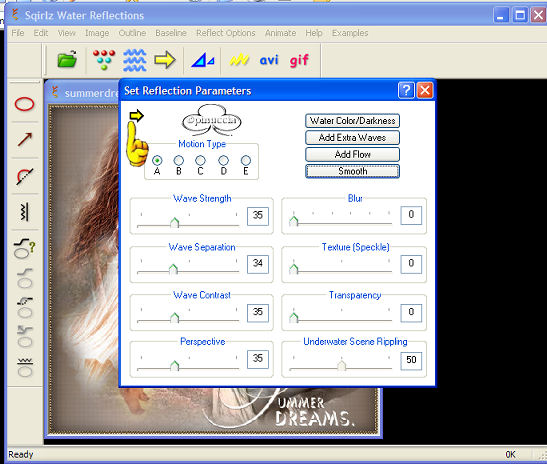 6. Imposta i parametri e controlla l'animazione cliccando sulla freccia gialla.