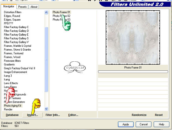 Questo apparirà sulla colonna di sinistra, clicca su Photo Aging Kit (manina rossa). E seleziona sulla destra Photo Frame 01 (manina verde).