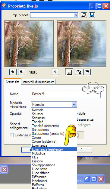 Nella paletta dei livelli cambia la modalità di miscelatura in Luminanza (esistente).