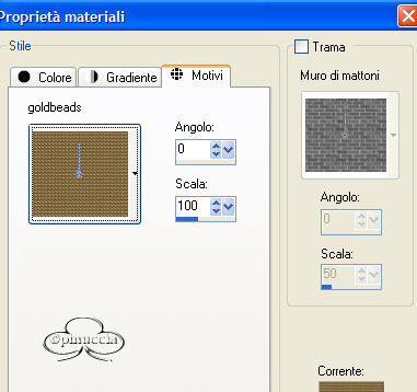 cerca e seleziona il motivo Goldbeads, angolo 0, scala 100: