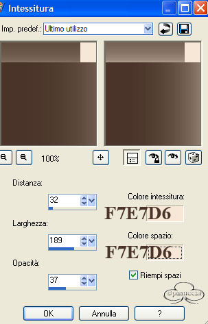 5. Effetti>Effetti di trama>Intessitura, con i seguenti settaggi: