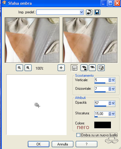 Effetti>Effetti 3D>Sfalsa ombra, con i seguenti settaggi: