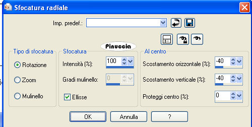 Regola>Sfocatura>Sfocatura radiale, con i settaggi precedenti.