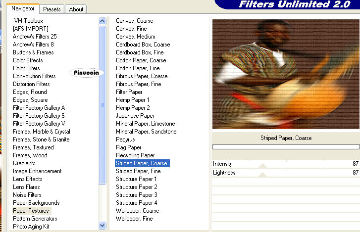 Effetti>Plugins>Filters Unlimited 2.0 - Paper Textures - Striped Paper Coarse: