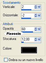 Effetti>Effetti 3D>Sfalsa ombra, con i settaggi precedenti: