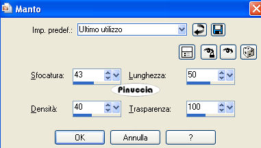 Effetti>Effetti di trama>Manto, con i settaggi precedenti.
