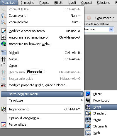 1. Se non vedi lo strumento "Script" nella barra superiore, vai a Visualizza>Barre degli strumenti e clicca sulla voce Script.