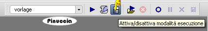 per evitare che lo script si fermi ad ogni azione, disattiva la modalità di esecuzione, cliccando sull'icona indicata nella schermata.