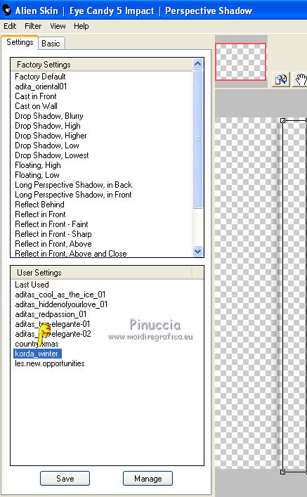 Effetti>Plugins>Alien Skin Eye Candy 5 Impact - Perspective Shadow,