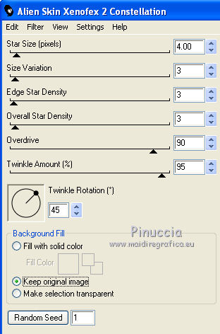 Ripeti l'Effetto Constellation con gli stessi settaggi, ma cliccando una volta su Random Seed.