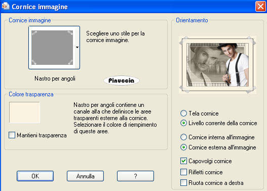 Immagine>Cornice-immagine - seleziona la cornice Nastro per angoli, con il colore di primo piano, e mantieni trasparenza non seleizonato.