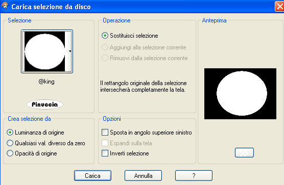 La selezione @king è ancora presente. Devi soltanto cliccare Carica.