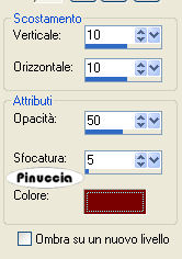 Effetti>Effetti 3D>sfalsa ombra, con i settaggi standard, ma con il colore di sfondo.