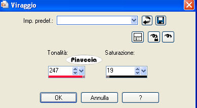 Regola>Tonalità e saturazione>Viraggio, con i settaggi precedenti.