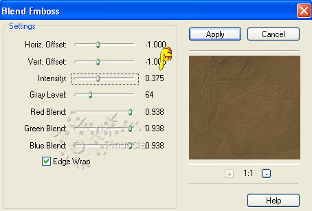 Effetti>Plugins>FM Tile Tools - Blend Emboss, con i settaggi precedenti.
