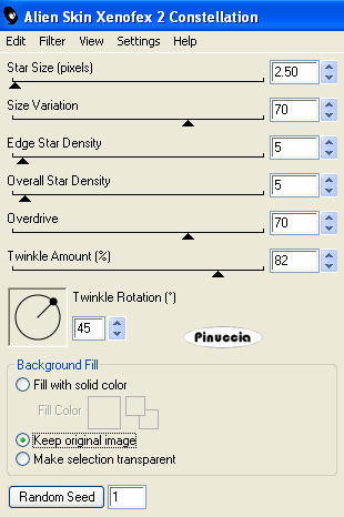 Ripeti l'Effetto Constellation con gli stessi settaggi, ma cliccando una volta su Random Seed.