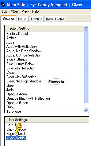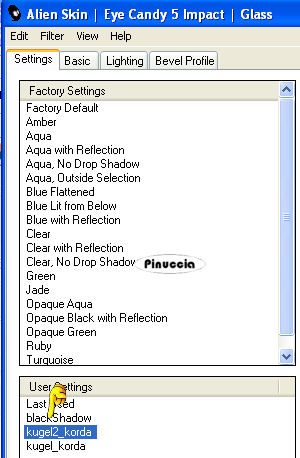 Metti i preset kugel_korda.f1s e kugel2_korda.f1s nella cartella Settings del filtro:C:\Alien Skin\Eye Candy 5 Impact\Settings\Glass.