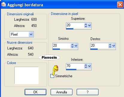 Immagine>Aggiungi bordatura, simmetriche non selezionato, con il colore bianco.